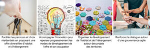 Les actions mises en place au titre de la satisfaction de ces objectifs se veulent plus largement au service de grandes finalités, parmi lesquelles la mixité et la cohésion sociales, la vitalité économique des territoires, l’atténuation et l’adaptation au changement climatique.